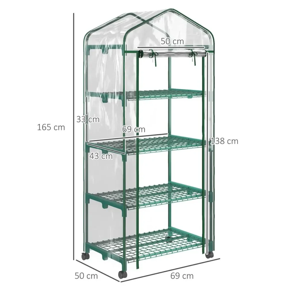 Ge dina plantor en flygande start på trädgårdssäsongen med detta praktiska och utrymmesbesparande miniväxthus. Trots sin kompakta design erbjuder detta folieväxthus generöst med plats på höjden, vilket gör det till det perfekta valet för både nybörjare och erfarna odlare som vill skydda sina fröer och ungplantor under de kritiska tidiga stadierna.