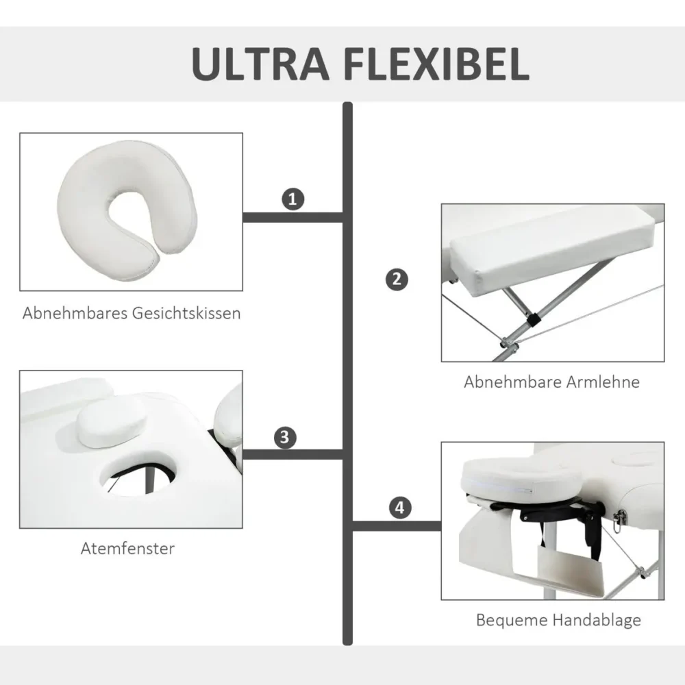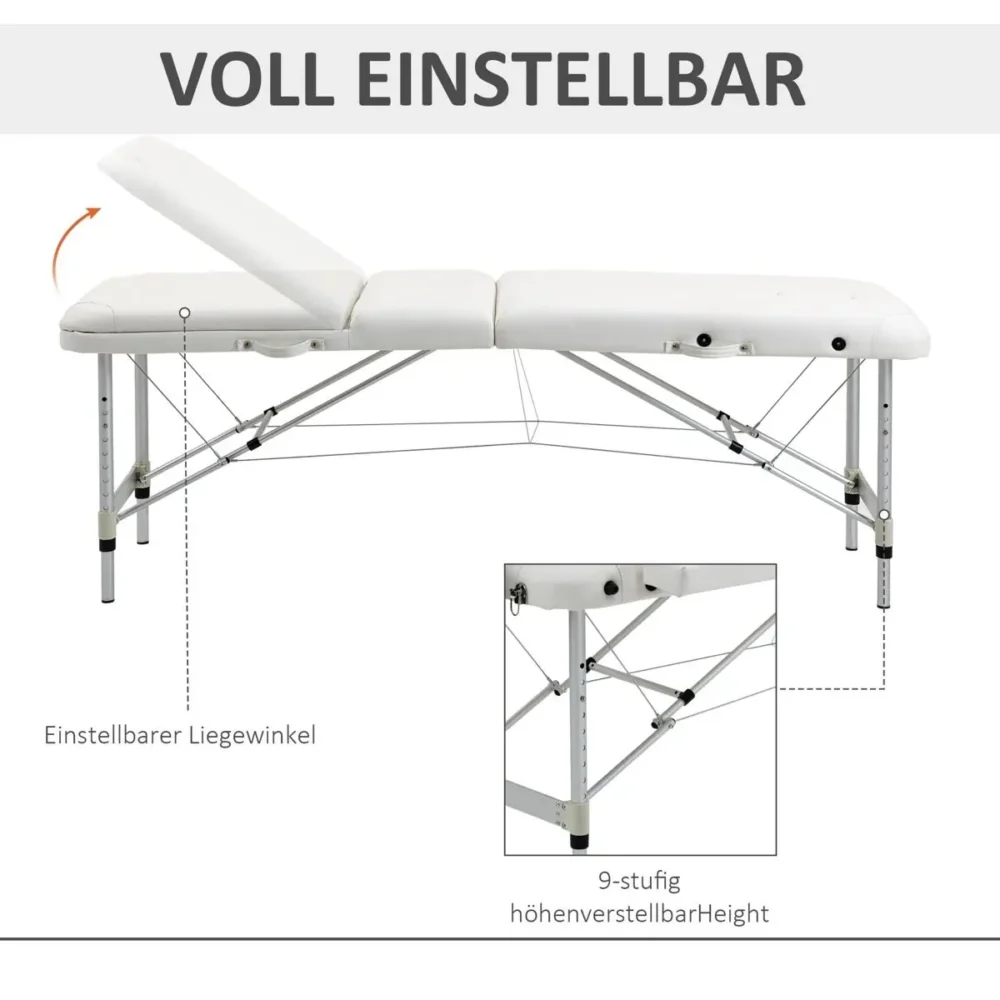 Bli först med att recensera ”Mobil Massagebänk 3-zoner Hopfällbar Vit Aluminium – Justerbar Massagesäng med Bärväska (Max 225 kg)”