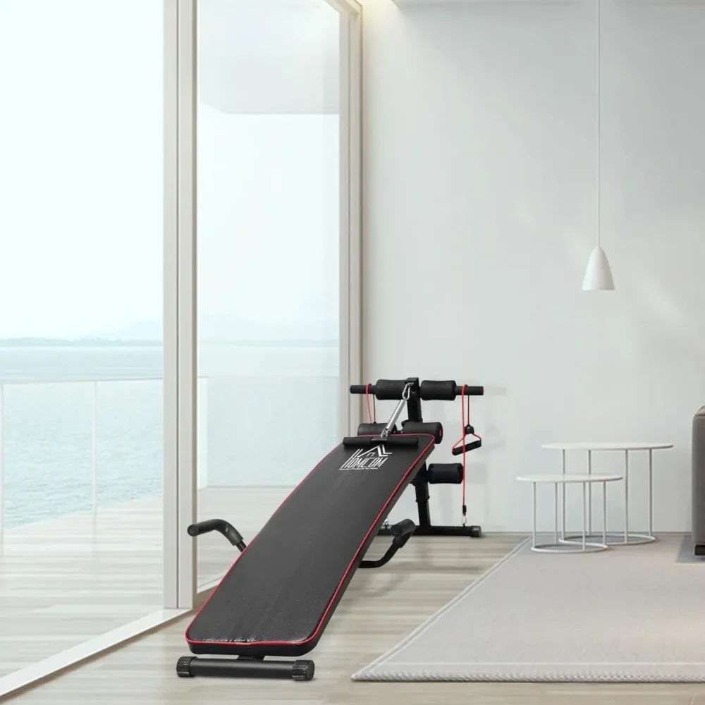 Ta gymmet till hemmet med denna högkvalitativa och multifunktionella träningsbänk. Oavsett om du vill fokusera på magmuskler, stärka ryggen eller bygga armstyrka, erbjuder denna sit-up-bänk alla verktyg du behöver för att uppnå dina fitnessmål. Den robusta stålkonstruktionen och den kompakta designen gör den till ett idealiskt val för effektiv helkroppsträning utan att ta för mycket plats i hemmet.