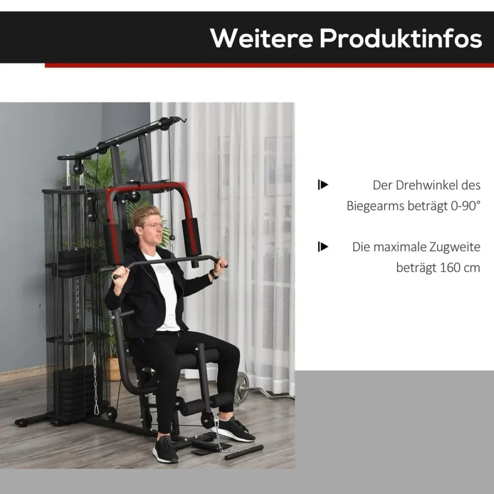 Investera i din hälsa med detta multifunktionella multigym. Denna kompletta träningsstation är designad för att ge dig ett professionellt gympass direkt i hemmet eller på kontoret. Oavsett om du vill bygga muskelmassa, förbättra din styrka eller bara hålla formen, erbjuder detta hemmagym en mångsidig lösning för kroppens alla muskelgrupper.