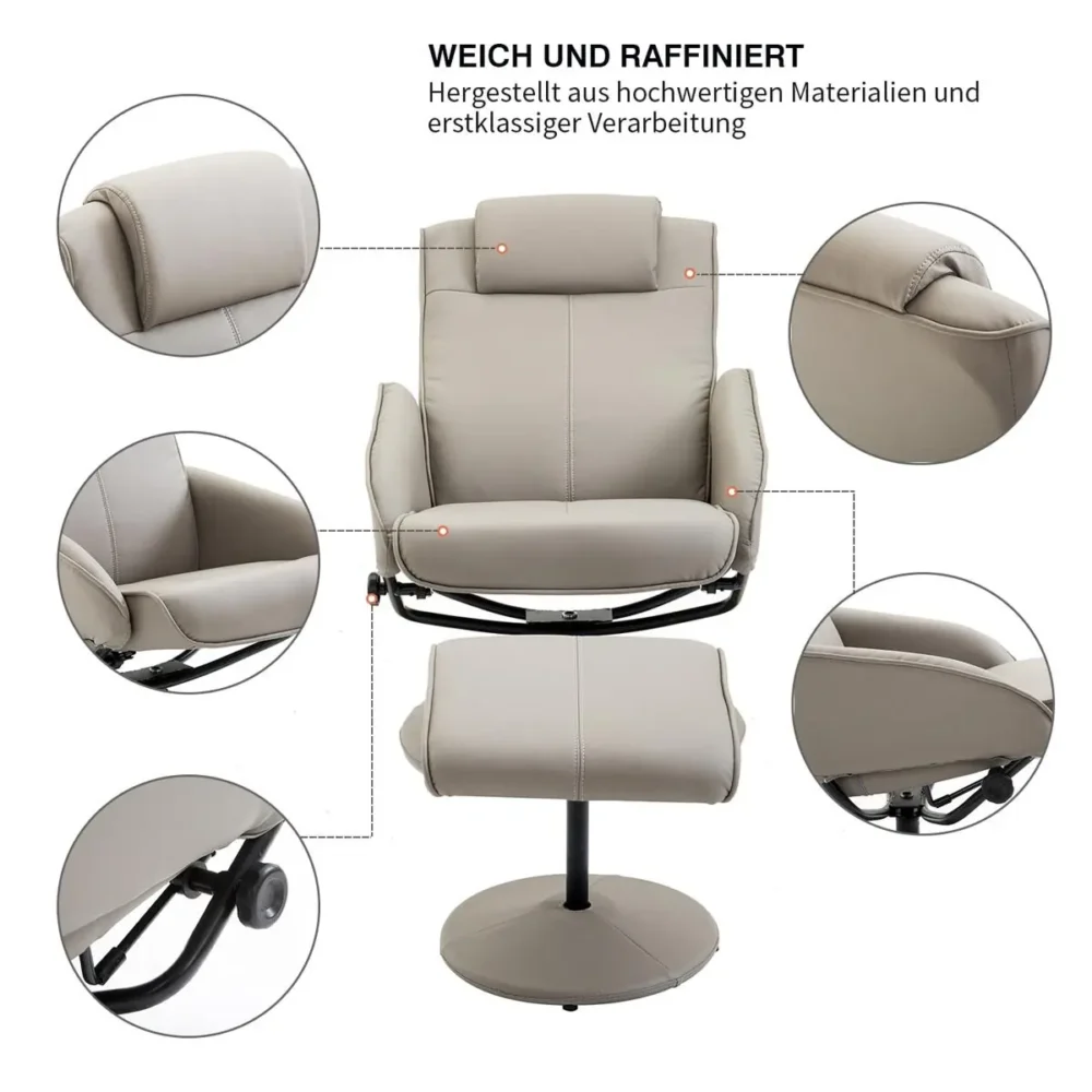 Bli först med att recensera ”Relaxfåtölj med fotpall – Grå TV-fåtölj i konstläder med 360° rotation & liggfunktion – Ergonomisk vilfåtölj”