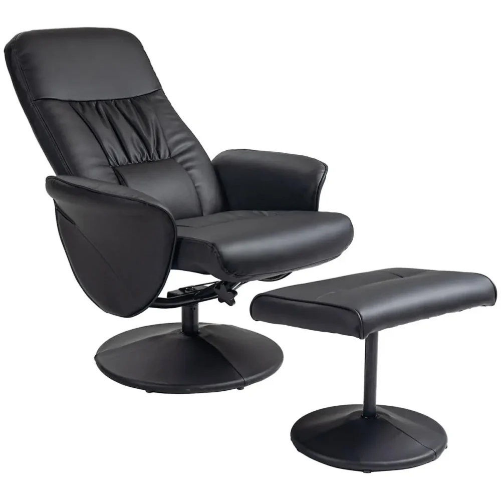 Skapa din egen oas för återhämtning med denna högkvalitativa relaxfåtölj med fotpall. Designad för att erbjuda högsta möjliga komfort, är denna fåtölj det perfekta tillskottet till hemmet för dig som värdesätter avkoppling. Den kombinerar en ergonomisk form med en stilren estetik i svart konstläder, vilket gör att den smälter in sömlöst i de flesta inredningsstilar, oavsett om det är i vardagsrummet eller på hemmakontoret.