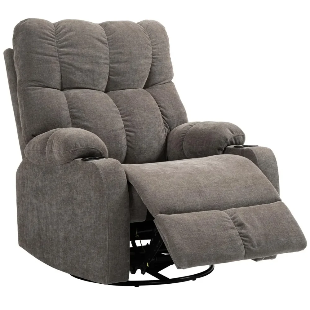 Bli först med att recensera ”Relaxfåtölj med fotstöd och gungfunktion – Modern snurrbar loungestol i ljusbrun linnelook, 150 kg kapacitet, 88x96x108 cm”