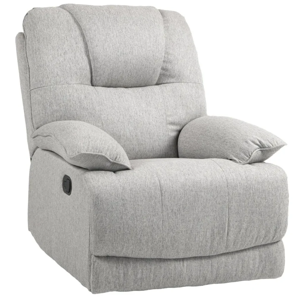Bli först med att recensera ”Relaxfåtölj med Recliner-funktion – Bekväm Liggfåtölj i grått tyg med Pocketresårer & Fotstöd – 89x101x105 cm”