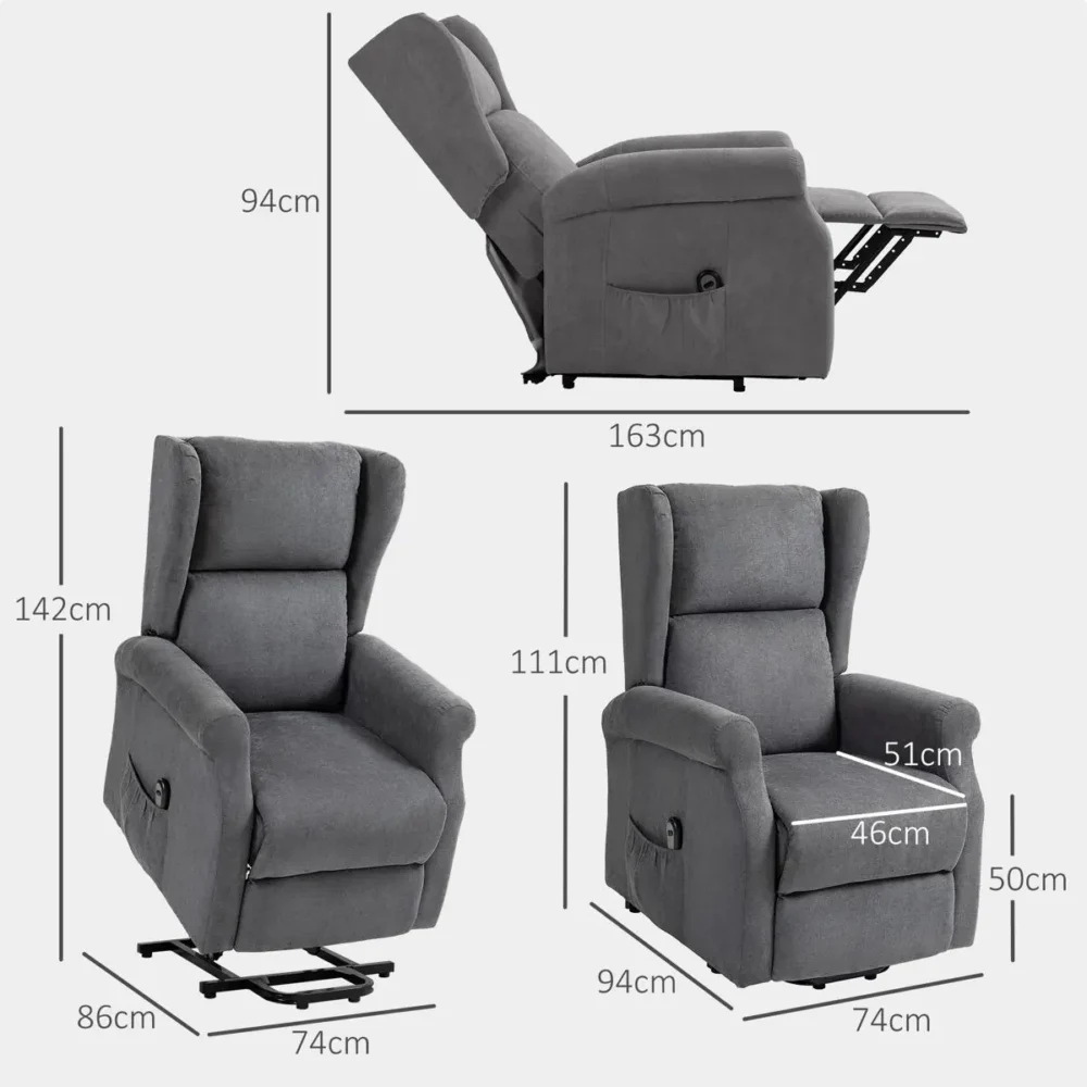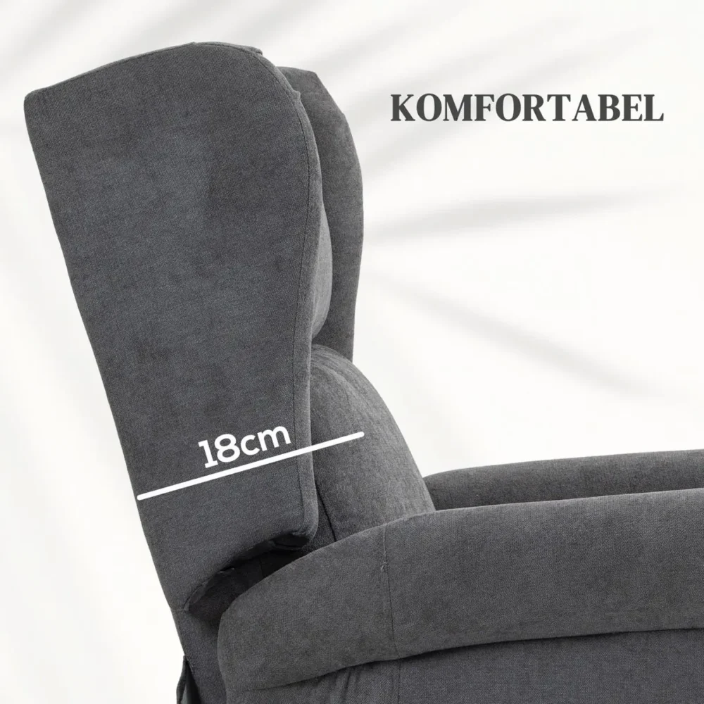 Bli först med att recensera ”Relaxfåtölj med uppresningshjälp och elektrisk liggfunktion – Seniorfåtölj i mörkgrått linne – Max 200 kg”