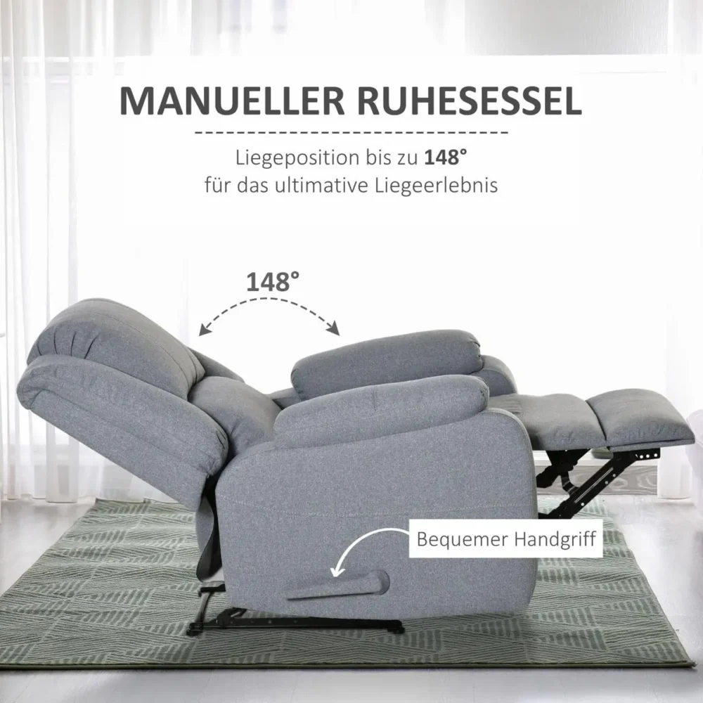 Bli först med att recensera ”Relaxstol & TV-fåtölj med liggfunktion | Reclinerfåtölj i ljusgrå linnelook med fotstöd | Justerbart ryggstöd 148° | Maxbelastning 150 kg”