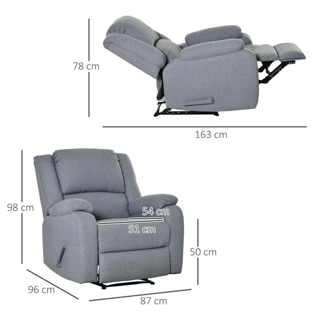 - Manuellt fotstöd: Det integrerade fotstödet fälls ut smidigt för att ge fullt stöd åt benen och maximera din vilokvalitet.