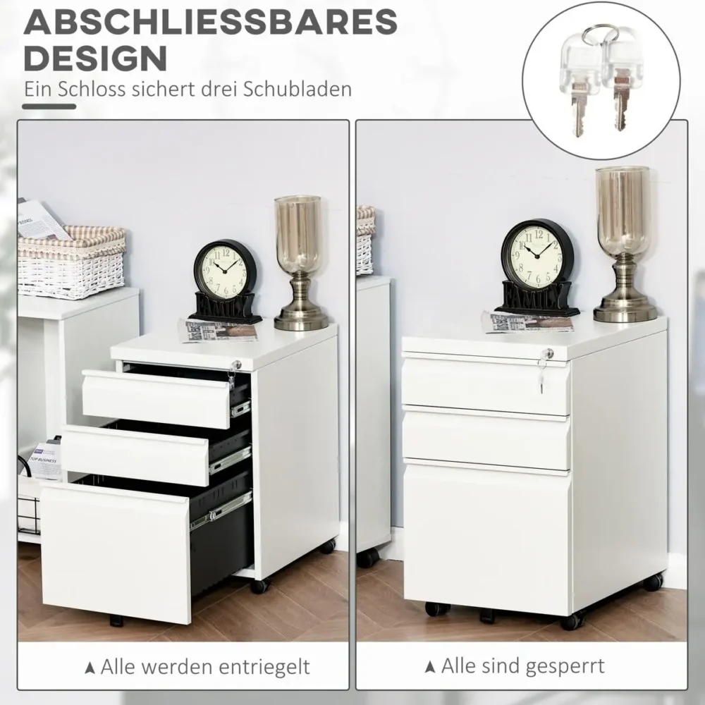 - Säkert låssystem: Alla tre lådor låses samtidigt med en nyckel, vilket skyddar dina personliga ägodelar och dokument.