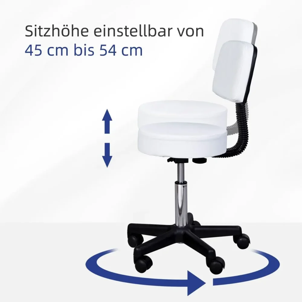 Upplev en ny nivå av arbetskomfort med denna ergonomiska rullpall med ryggstöd. Oavsett om du arbetar i en skönhetssalong, på en läkarmottagning, i en tatueringsstudio eller vid skrivbordet hemma, är denna stol designad för att underlätta din vardag. Den stilrena vita designen i kombination med hög funktionalitet gör den till ett självklart val för proffs.