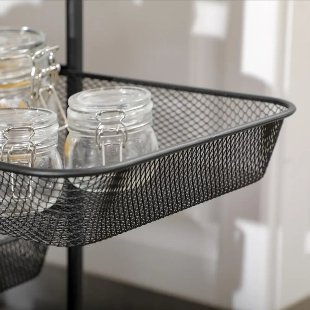Bli först med att recensera ”Rullvagn med 4 korgar och bordsskiva – Svart förvaringsvagn för kök och badrum – 41,5 x 31 x 66 cm”