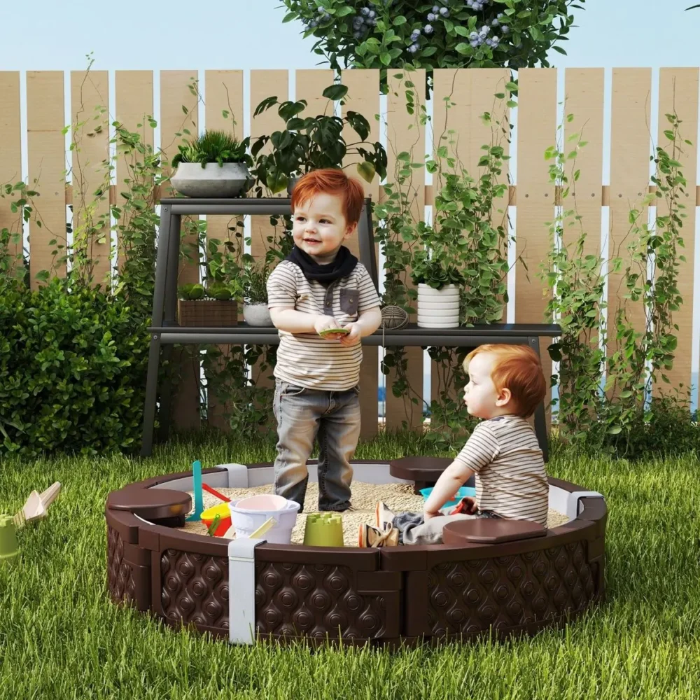 Bli först med att recensera ”Rund Sandlåda i Plast med 3 Sittplatser, Markunderlag och Överdrag – Plats för 3 Barn, UV-resistent, Mörkbrun”