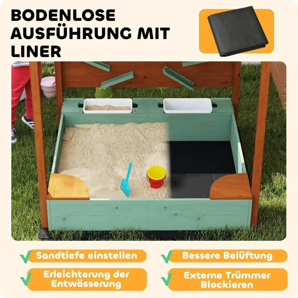 Bli först med att recensera ”Sandlåda med Soltak för Barn – Grön Sandlåda i Granträ med Förvaring, Sittplatser & Markduk (116 x 112,5 x 128 cm)”