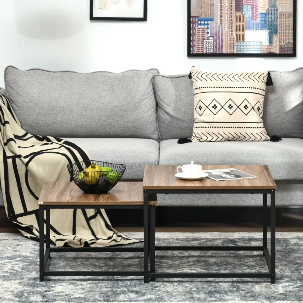 - Platsbesparande lösning: Den genialiska designen gör det möjligt att skjuta in det lägre bordet under det högre, vilket är perfekt för mindre vardagsrum.