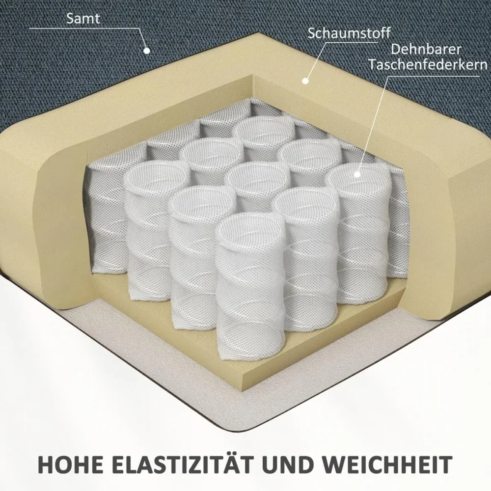 - Material: Sammet (100% polyester), högkvalitativt skum, stålram