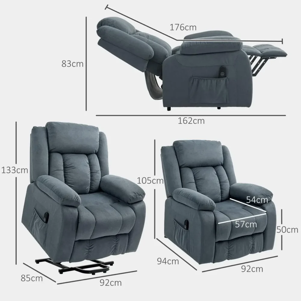 Bli först med att recensera ”Seniorfåtölj med uppstigningshjälp – Bekväm Reclinerfåtölj i Grå Sammet med Fjärrkontroll, Sidofickor och Justerbart Fotstöd”
