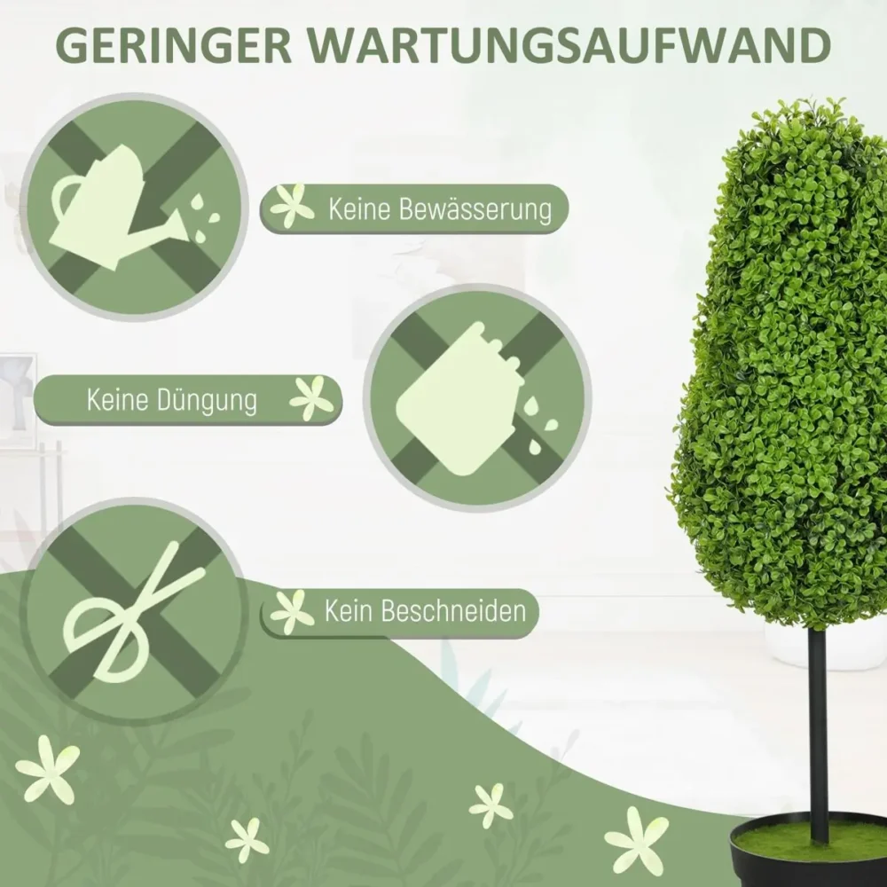 Ge ditt hem eller din uteplats en tidlös och grönskande känsla med detta set om två konstgjorda buxbommar. Med sin eleganta droppformade design och naturtrogna detaljer är de det perfekta valet för dig som vill ha en modern och inbjudande inredning utan krångel. Dessa konstväxter är skapade för att se fantastiska ut år efter år, oavsett var du placerar dem.