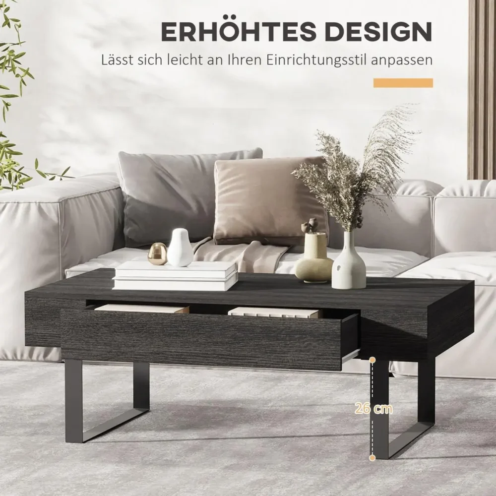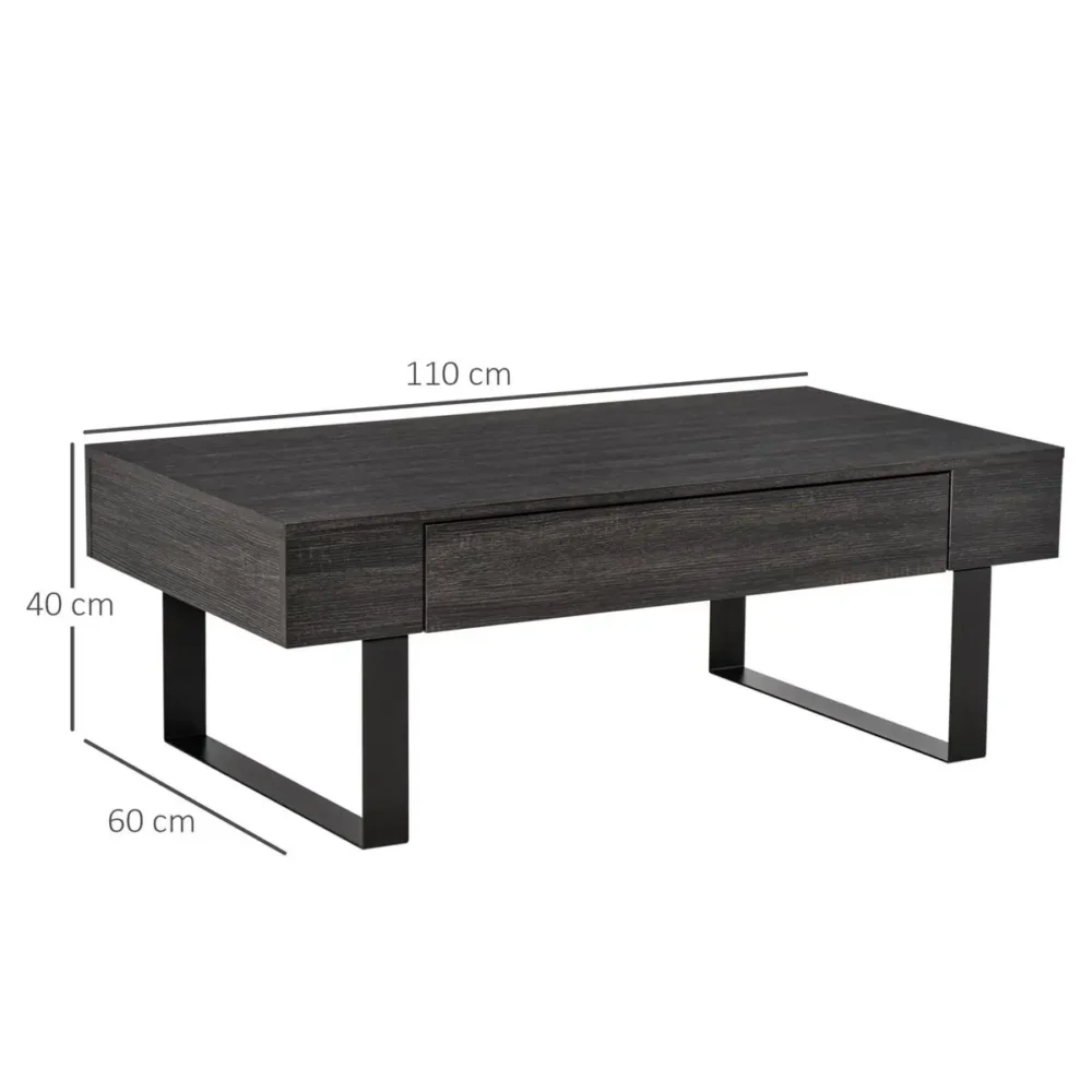 Bli först med att recensera ”Soffbord 110×60 cm med låda & metallram – Modernt vardagsrumsbord i mörkgrått – Minimalistiskt sidobord med öppen förvaring”