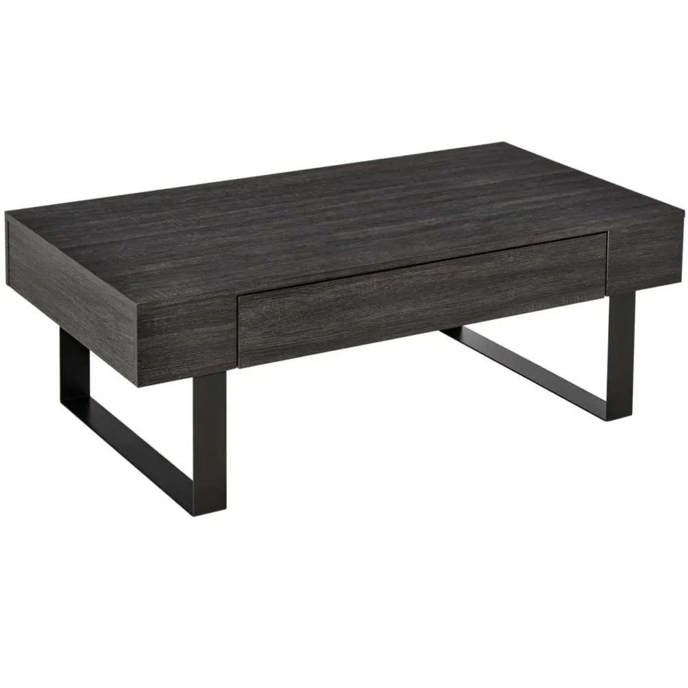 Ge ditt hem ett lyft med detta eleganta och funktionella soffbord i mörkgrått. Med sin perfekta balans mellan industriell estetik och modern minimalism erbjuder bordet inte bara en stilren sällskapsyta, utan också smarta lösningar för ett mer organiserat vardagsrum. Den rustika träådringen i kombination med den svarta metallramen ger en sofistikerad känsla som förhöjer inredningen i både vardagsrummet och på kontoret.