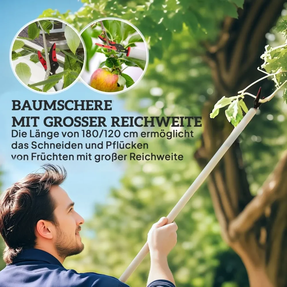 - Mångsidig användning: Fungerar lika bra som en effektiv fruktplockare som en kraftfull grensax för trädgårdens alla buskar.