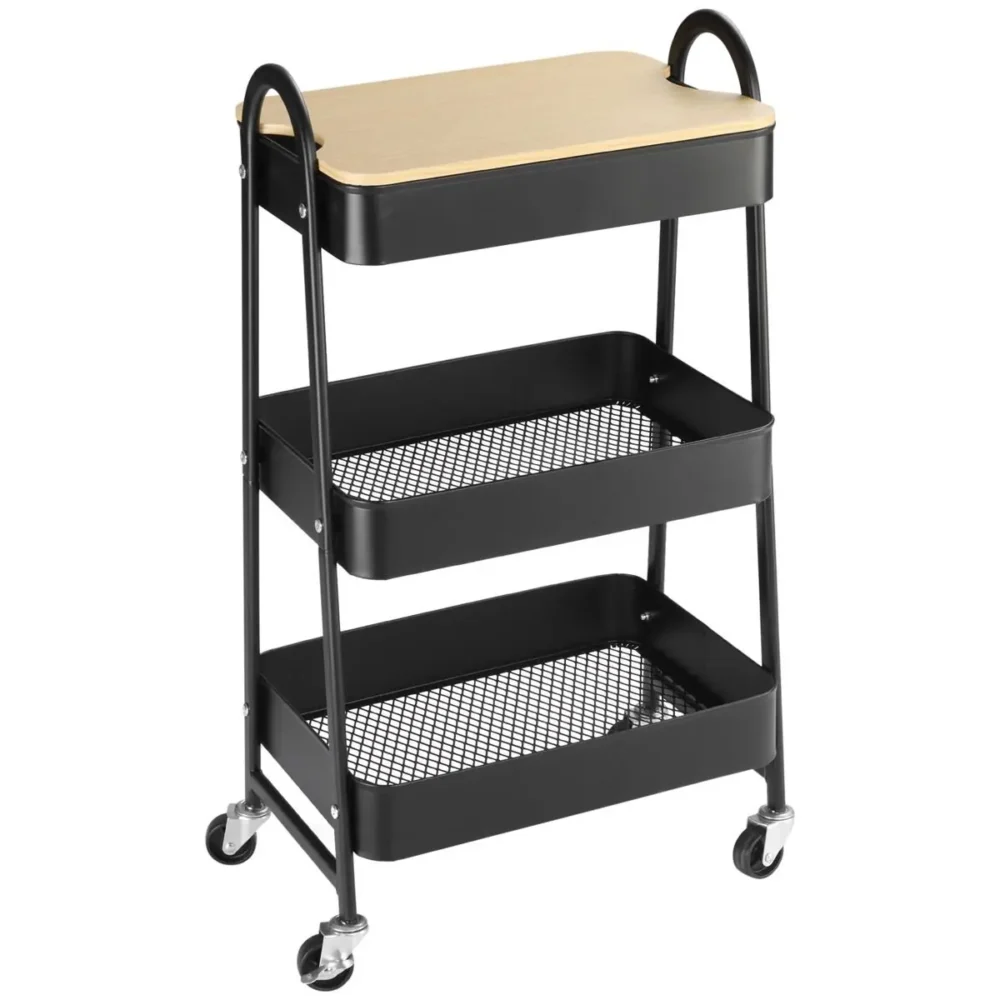 Bli först med att recensera ”Svart Rullvagn med 3 Korgar och Lock – Kompakt Serveringsvagn på Hjul för Kök och Badrum – 45x31x79 cm”