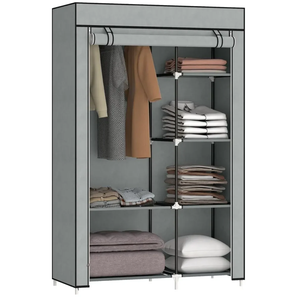 Bli först med att recensera ”Tygarderob med 6 Hyllor och Klädstång – Praktisk Garderob i Grått Tyg för Klädförvaring (103x43x162,5 cm)”