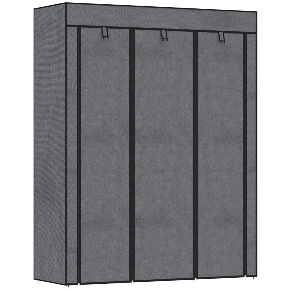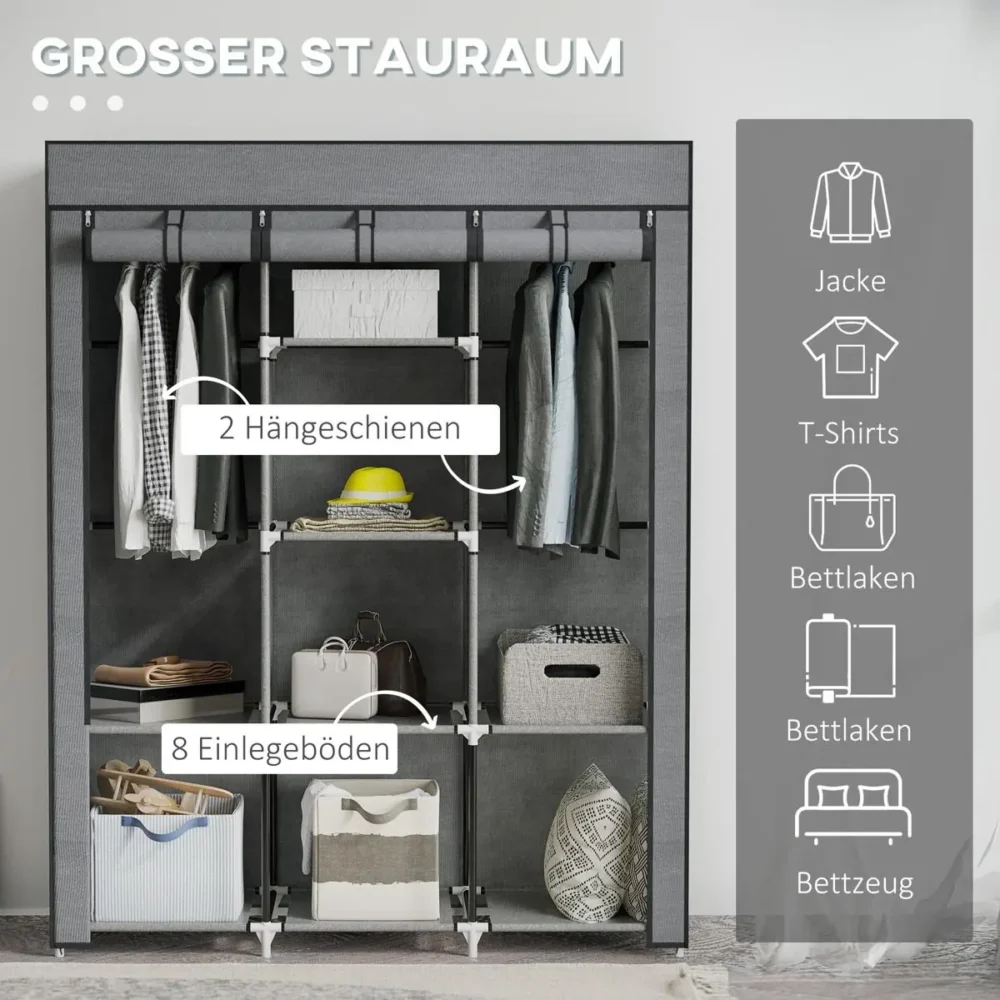 Bli först med att recensera ”Tygarderob med 8 hyllor & 2 klädstänger – Mörkgrå klädförvaring 125x43x162,5 cm”