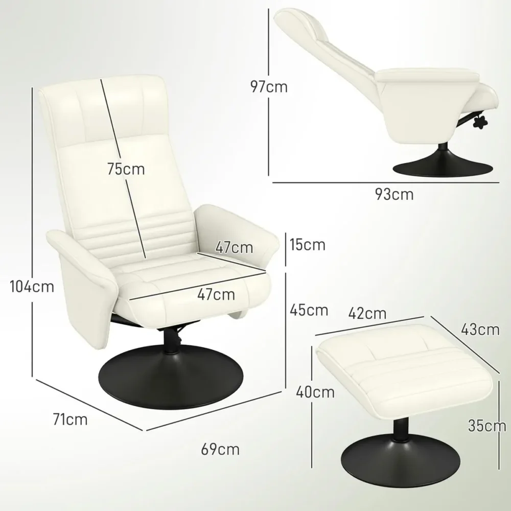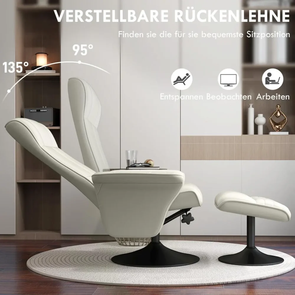 Uppgradera din hemmiljö med en elegant vilfåtölj och fotpall som kombinerar modern estetik med oslagbar bekvämlighet. Denna TV-fåtölj i gräddvit mikrofiberlook är den ultimata tillflyktsorten efter en lång arbetsdag. Tack vare den ergonomiska utformningen och den generösa stoppningen kan du luta dig tillbaka och njuta av total lugn och ro i en fåtölj som är designad för långvarig användning.